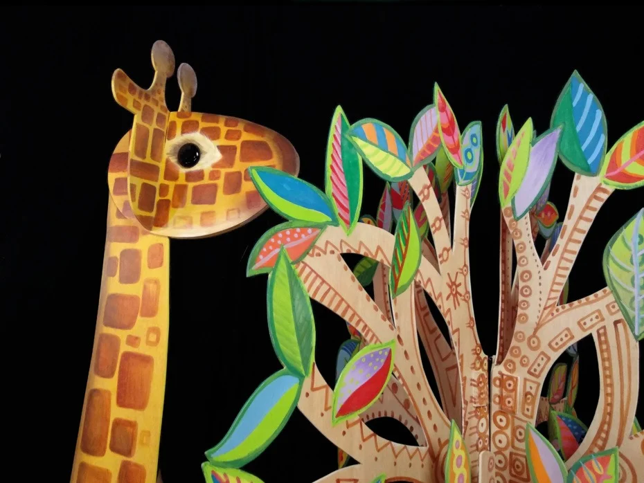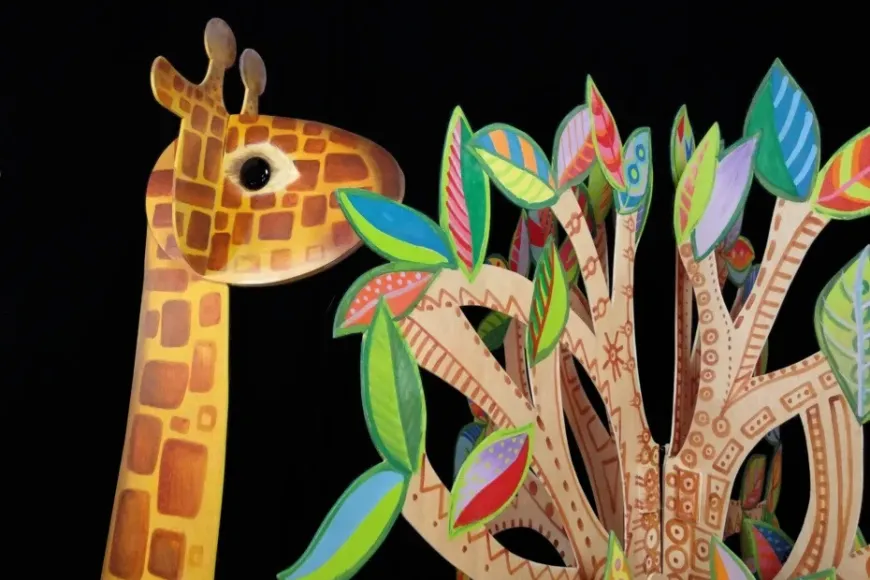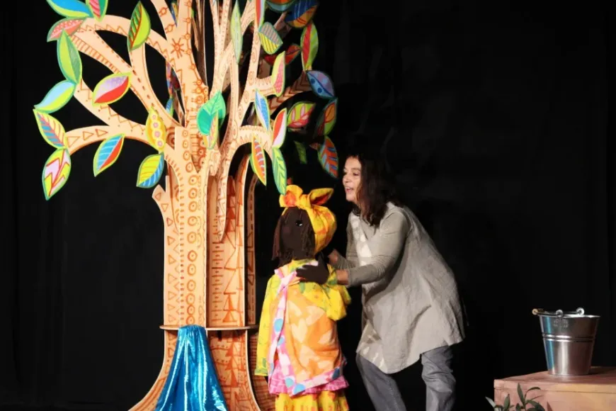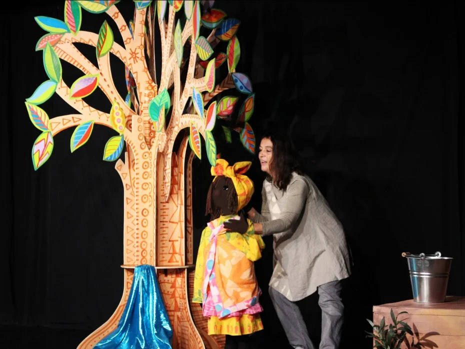 És un espectacle de titelles de mida gran i sense paraules i una posada en escena inspirada en les nines de drap i les jouines de fusta.