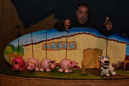 Amanit amb cançons i molt humor, en aquest espectacle coneixerem també en Manolito, el granger titellaire, Papacerdo i el gos lladrador; recordant-li al públic que els contes, cada vegada que es conten, són diferents.